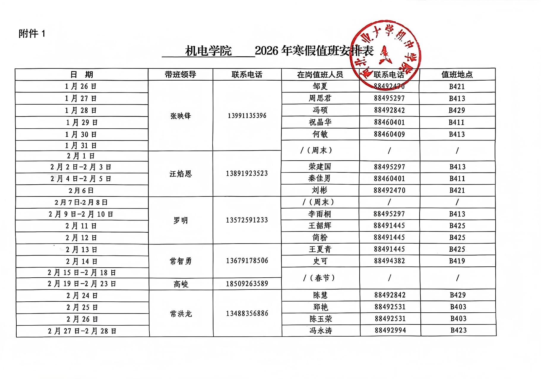线上赌场 2026年寒假值班安排